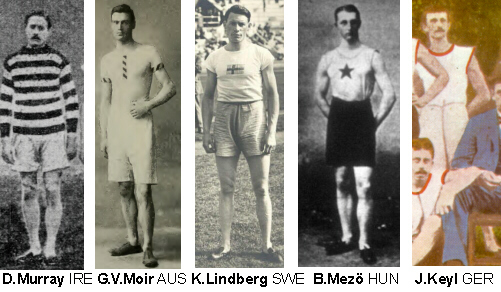 No hubo franceses ni británicos (y es que éstos habían sido humillados por los chicos del tío Sam una semana antes en el campeonato inglés). Entre los europeos estaba el campeón húngaro Schubert, el sueco recordman mundial (de 100m) Westergren y un danés, Johannes Gandil, que no destacó pero que será subcampeón olímpico en 1908... de fútbol (y un famoso directivo y periodista). La presencia del australiano Rowley y del anglo-indio Pritchard amplió a cuatro el número de continentes en liza.